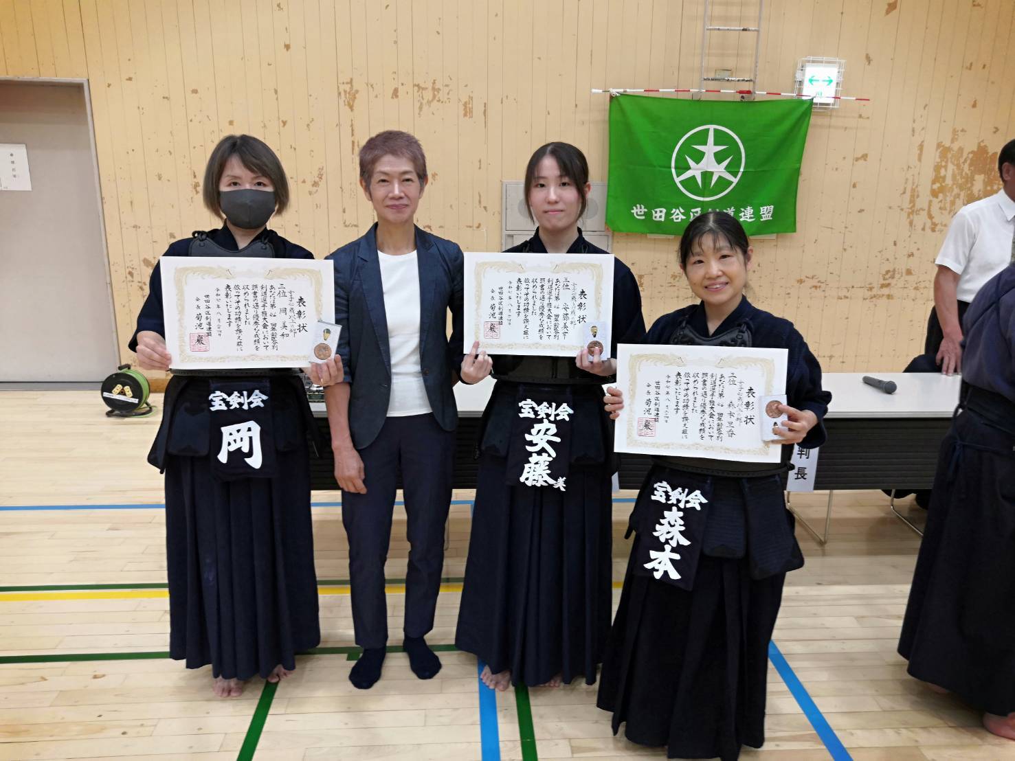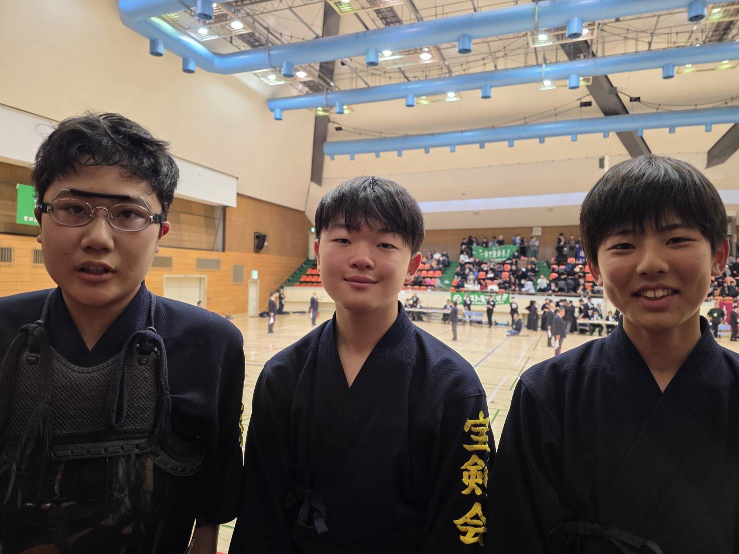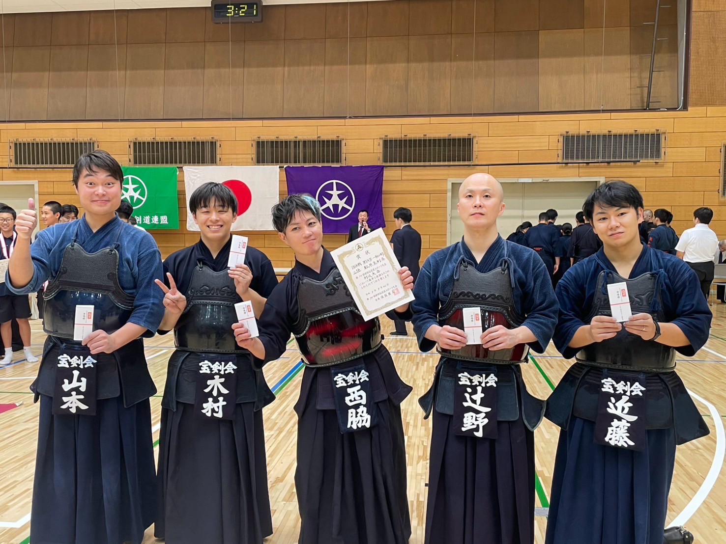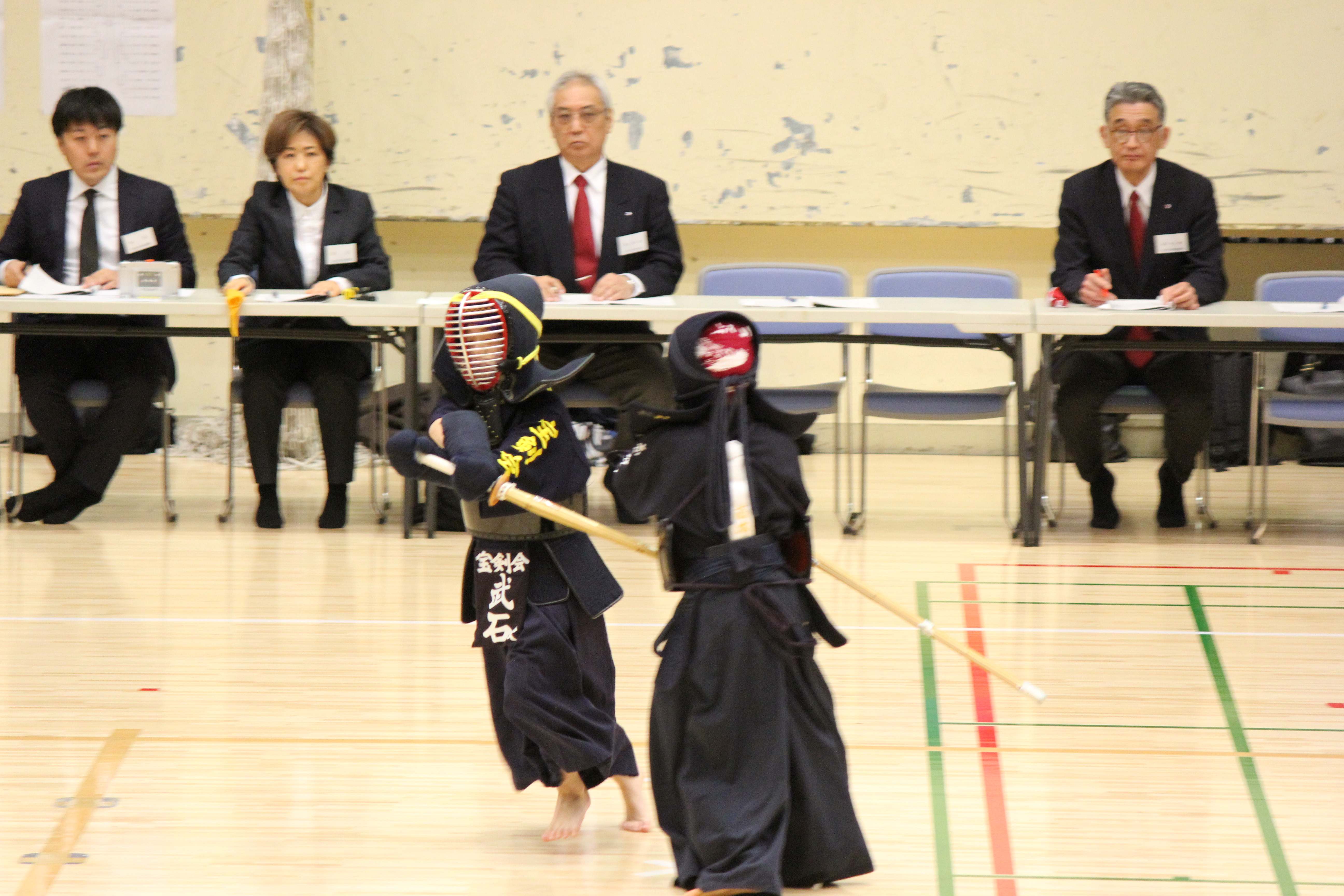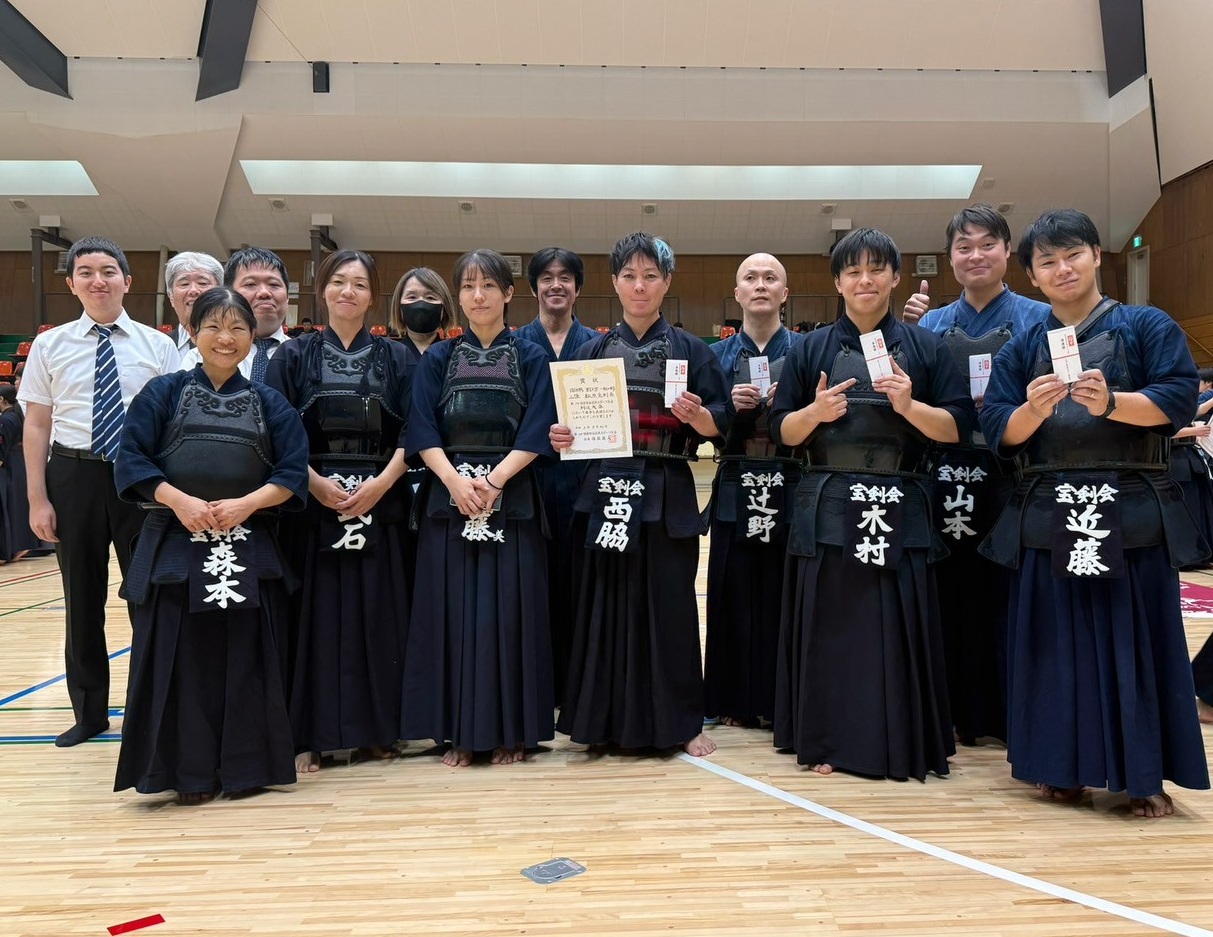 当会からは選手や係員として多くのメンバーが参加した大会。個人戦では2名がベスト8と健闘する中、男子団体は決勝に進出し、勝ち数で並んだものの1本差の僅差での準優勝と素晴らしい成績を残しました。宝剣会チームの熱い戦いに会場は異様な盛り上がりを見せ、会員に勇気と自信を与える1日となりました。