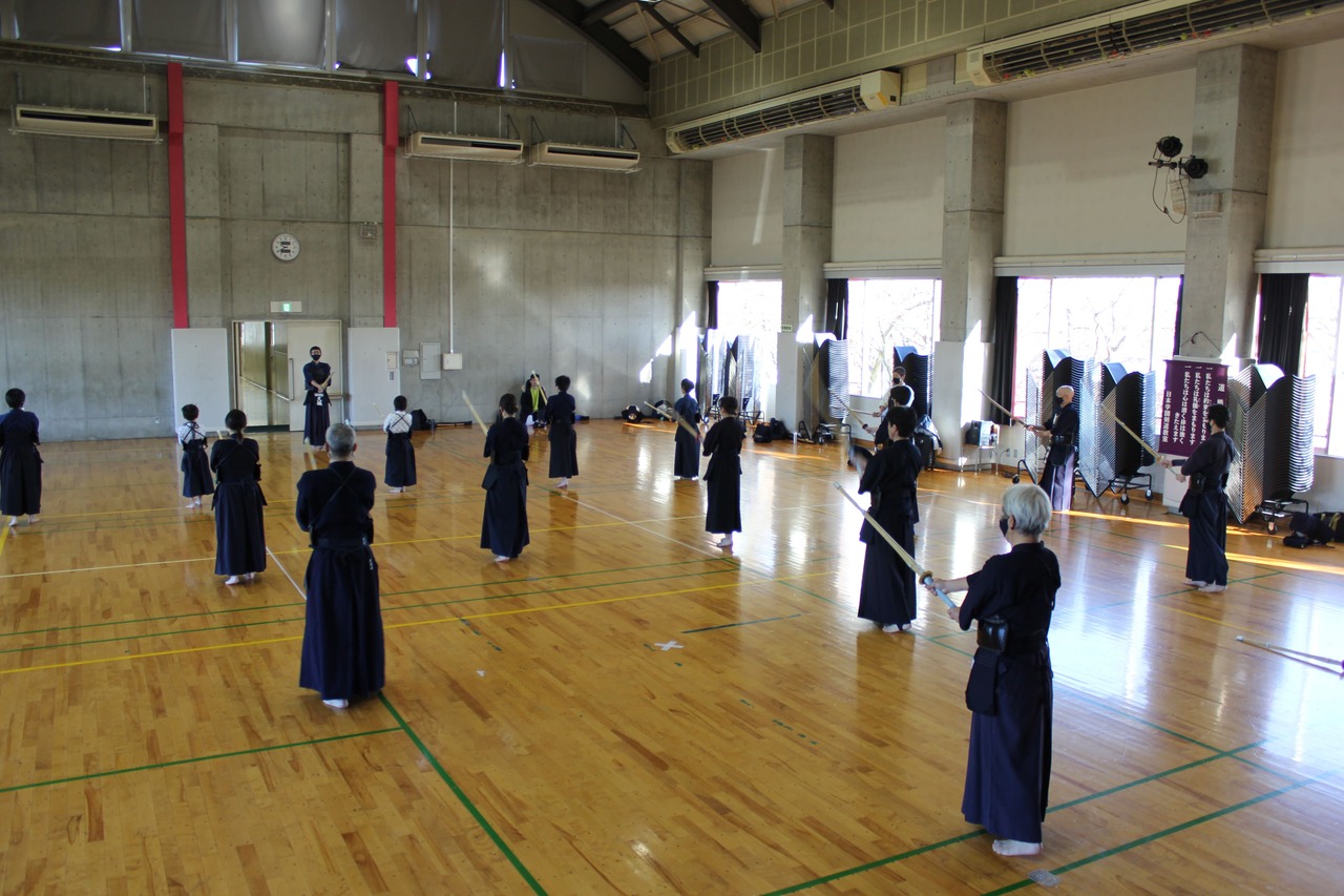 松原宝剣会からは20~70歳代の男女全13名が参加、選手宣誓は当会の塩見選手が立派に務められました。日頃の稽古の成果を発揮するべく、白熱の戦いとなりましたが、男子30歳代の部で近藤選手が2位、女子20~39歳代の部で安藤選手が3位、50歳以上の部では岡選手と森本選手がともに3位に入賞するなど素晴らしい成績を残されました。