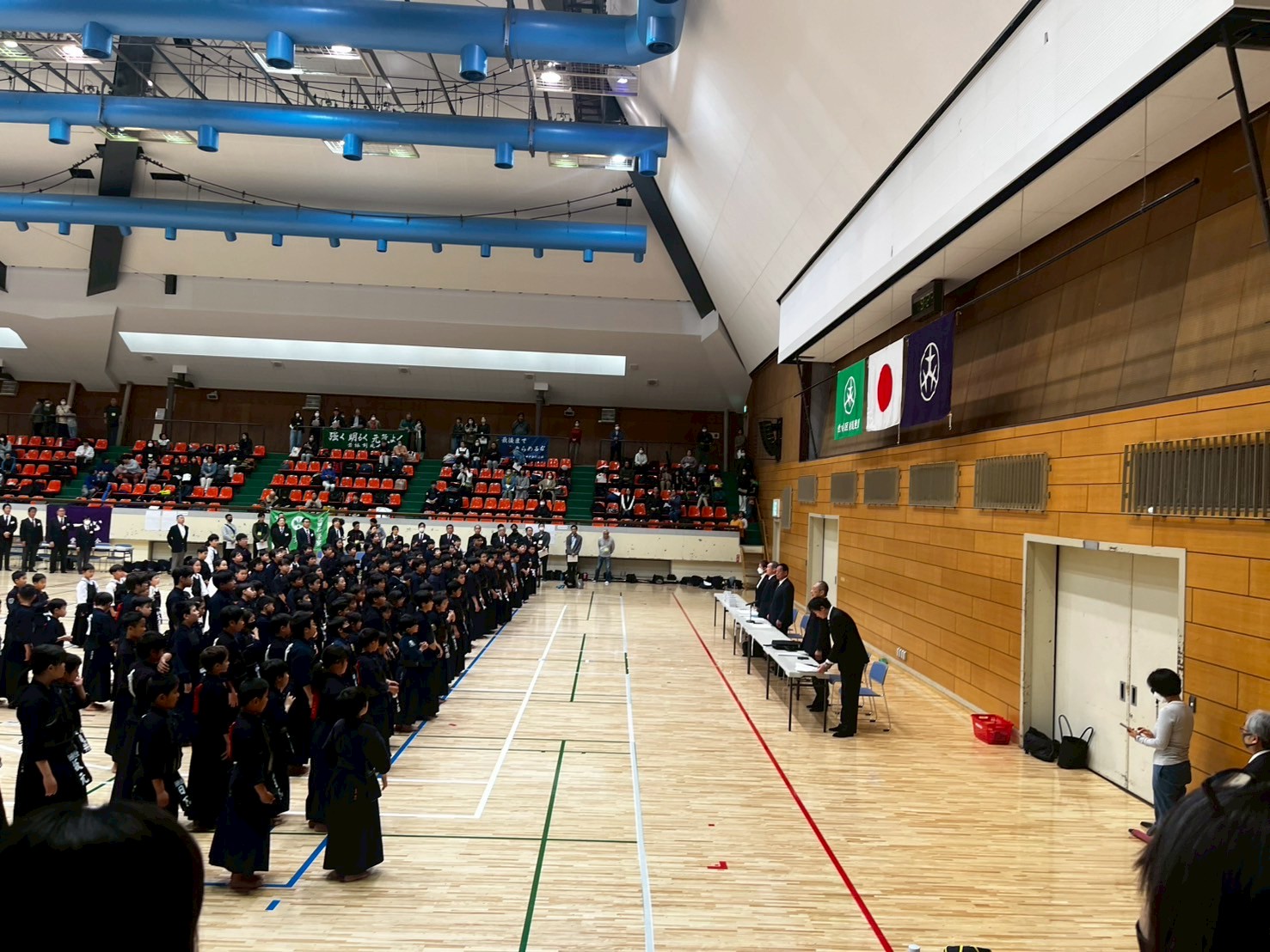区立総合運動場体育館で開催された「少年剣道大会個人戦」に小学生6名、中学生3名が出場しました。初めて試合を経験した子、惜しくもベスト4を逃した子など、先生・保護者からの声援を受け、それぞれが一生懸命に戦いました。
